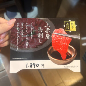 おすすめメニューは「熊本直送国産ユッケ」 1,450円(税込)と「熊本直送国産馬刺し 」1,890円(税込)です!