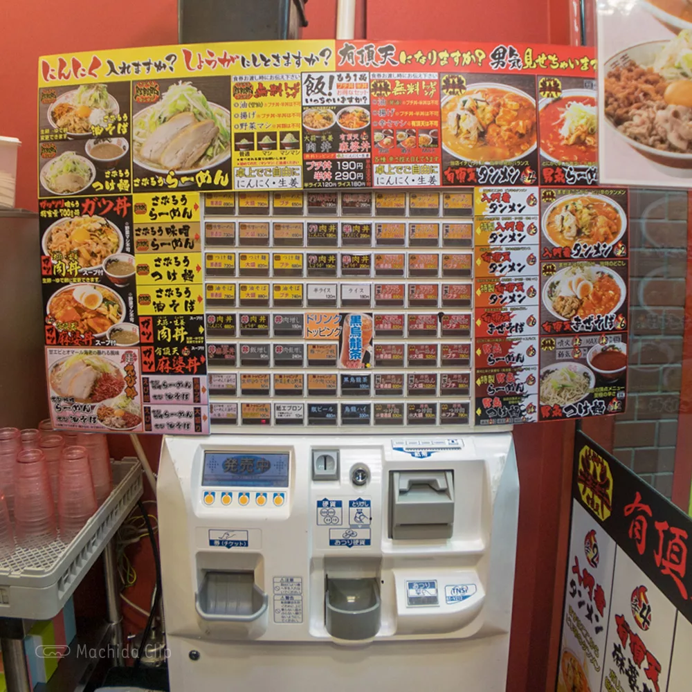 「郎郎郎(さぶろう)」では、主なメニューとして二郎インスパイア系ラーメンの他に激辛系有頂天タンメンあります。有頂天タンメンにも無料トッピングがあり、辛さの度合い・油・揚げを選ぶ事ができ、辛さは男気・噴火・MAXの3段階で選ぶ事ができます。